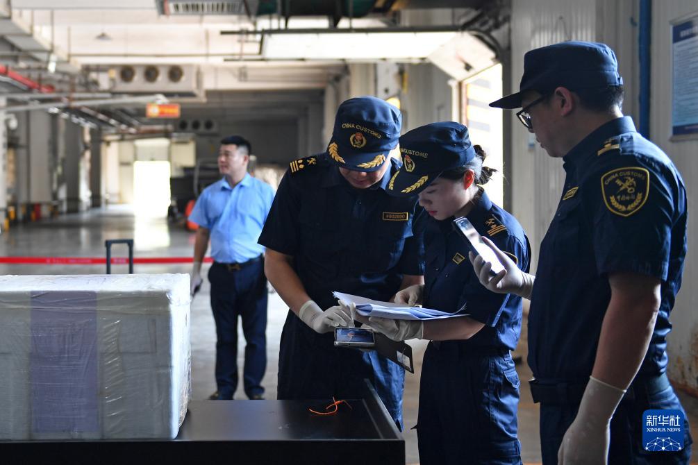 9月8日,长沙海关关员在验核货物信息。